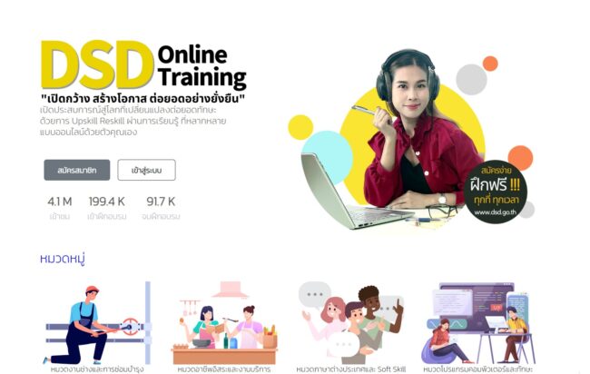 ยังมีแรงงานจำนวนมากที่ตกงานเพราะขาดทักษะด้านดิจิทัล การมีทักษะด้านดิจิทัลจึงเป็นเรื่องที่สำคัญมาก ไม่ใช่แค่เรื่องการอยู่รอดในระดับปัจเจกบุคคลเท่านั้น แต่ยังเป็นปัจจัยหนึ่งที่สำคัญต่อการขับเคลื่อนเศรษฐกิจของประเทศอีกด้วยนายเดชา กล่าวต่อว่า สำหรับเว็บไซต์ DSD Online Training ปัจจุบันมีผู้สนใจเข้าฝึกอบรมกว่า 1 แสนคน ผ่านการฝึกแล้วจำนวน 91,700 คน และมีผู้เข้าชมหลักสูตรการฝึกกว่า 4 ล้านคน โดยกรมได้จัดเตรียมหลักสูตรไว้หลากหลายหลักสูตรที่ทันสมัย มีการแบ่งหมวดหมู่ดังนี้ หมวดภาษาต่างประเทศและ Soft Skill หมวดโปรแกรมคอมพิวเตอร์และทักษะดิจิทัล หมวดงานช่างและการซ่อมบำรุง หมวดอาชีพอิสระและงานบริการ เพื่อบริการแรงงานที่ต้องการ Upskill หรือ Reskill ตนเอง อาทิ หลักสูตร Microsoft AI Skills for All หลักสูตร Generative AI สำหรับอุตสาหกรรมการท่องเที่ยว หลักสูตรเทคนิคการขยายธุรกิจและสร้างรายได้บน Meta แพลตฟอร์ม หลักสูตร e- Commerce และพลเมืองดิจิทัล หลักสูตรการเพิ่มประสิทธิภาพการทำงานด้วย Generative AI และหลักสูตร Basic Network สำหรับมือใหม่สาย ITแรงงานท่านใดที่สนใจสามารถสมัครง่าย ฝึกฟรี ทุกที่ ทุกเวลา พร้อมรับ Certificate ทันทีเมื่อจบหลักสูตร สามารถลงทะเบียนได้ที่ onlinetraining.dsd.go.th หรือเว็บไซต์ของกรมพัฒนาฝีมือแรงงาน www.dsd.go.th เมนู DSD Online Training อธิบดีกล่าวทิ้งท้าย