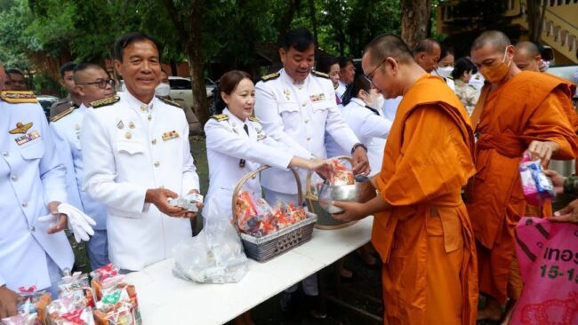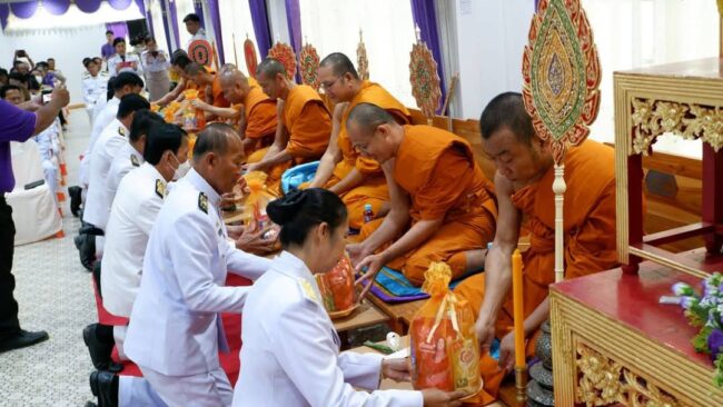 ด้วยคณะผู้บริหาร หัวหน้าส่วนราชการ พนักงานส่วนตำบล และพนักงานจ้าง เข้าร่วมพิธีทำบุญตักบาตรถวายพระ