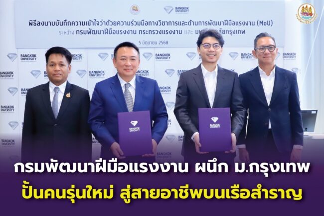 “กรมพัฒนาฝีมือแรงงาน ผนึก ม.กรุงเทพ ปั้นคนรุ่นใหม่ สู่สายอาชีพบนเรือสำราญ”
