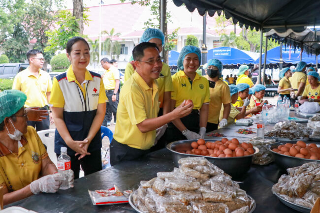 วันนี้ (30 กรกฎาคม 2568) เวลา 09.30 น. ณ บริเวณศาลากลางจังหวัดสุโขทัย นายนพฤทธิ์ ศิริโกศล ผู้ว่าราชการจังหวัดสุโขทัย พร้อมด้วยนางฐิติพร ศิริโกศล นายกเหล่ากาชาดจังหวัดสุโขทัย เยี่ยมให้กำลังใจผู้ปฏิบัติหน้าที่ประกอบอาหารที่โรงครัวพระราชทาน , โรงครัวมูลนิธิอาสาเพื่อนพึ่ง(ภา)ยามยาก สภากาชาดไทย และโรงครัวจิตอาสา ในการจัดเตรียมวัตถุดิบ ปรุงอาหารประกอบเลี้ยง เพื่อแจกจ่ายแก่ประชาชนผู้ประสบอุทกภัยในจังหวัดสุโขทัย