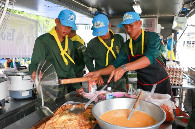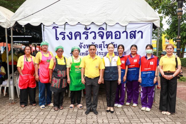 โดยในวันนี้แต่ละโรงครัว มีเป้าหมายในการประกอบอาหาร ดังนี้ โรงครัวพระราชทานมีเป้าหมายจัดเตรียมอาหาร จำนวน 3,000 กล่อง โรงครัวมูลนิธิอาสาเพื่อนพึ่ง(ภา)ยามยาก สภากาชาดไทย มีเป้าหมายจัดเตรียมอาหาร 1,500 กล่อง และโรงครัวจิตอาสา มีเป้าหมายเตรียมอาหาร 5,540 กล่อง กำหนดแจกจ่ายแก่ประชาชนผู้ประสบภัยในแต่ละพื้นที่จนกว่าสถานการณ์จะคลี่คลาย สำหรับวันนี้กลุ่มผู้นำท้องที่ ผู้นำท้องถิ่น อำเภอเมืองสุโขทัย กลุ่มเยาวชนจิตอาสา สมาชิกเหล่ากาชาดจังหวัดสุโขทัย หัวหน้าส่วนราชการ ข้าราชการ กำลังพลทหาร มทบ.39 และจิตอาสาภาคประชาชนร่วมปฏิบัติหน้าที่บริเวณโรงครัว