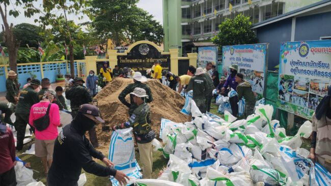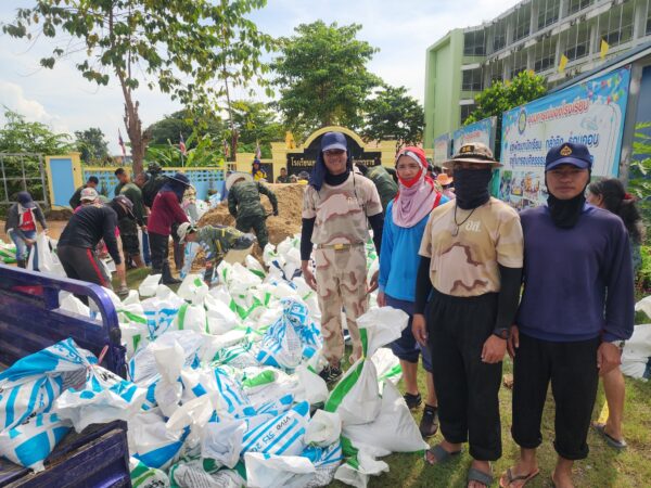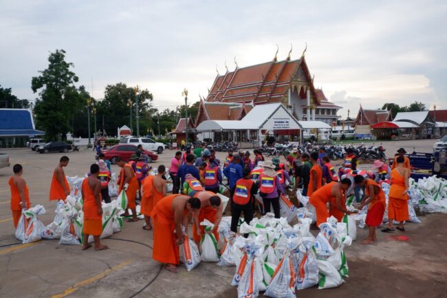 ขณะที่ มณฑลทหารบกที่ 36 จัดกำลังชุดปฏิบัติการบรรเทาสาธารณภัย จำนวน 30 นาย ช่วยกันบรรจุกระสอบทรายวางแนวป้องกันน้ำล้นทะลักไหล่เข้าท่วมย่านเศรษฐกิจ และชุมชนของจังหวัดพิจิตร รวมถึงพระภิกษุสงฆ์ สามเณร วัดท่าหลวงพระอารามหลวง และศิษย์ยานุศิษย์ เทศบาลเมืองพิจิตร ช่วยกันจัดทำกระสอบทรายสร้างแนวป้องกันน้ำไหลเข้าท่วมพื้นที่ของวัดท่าหลวงพระอารามหลวง หลังระดับน้ำในแม่น้ำสายหลักของจังหวัดพิจิตร เพิ่มสูงขึ้นอย่างต่อเนื่อง