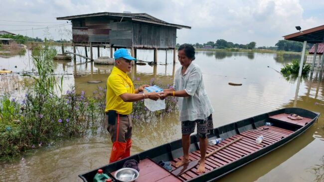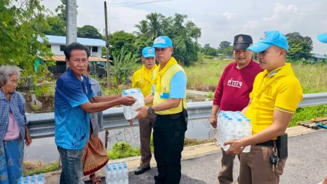 ตำรวจจิตอาสาภัยพิบัติสถานีตำรวจภูธรเมืองอุทัยธานี พร้อมผู้นำชุมชน ให้ความช่วยเหลือแจกสิ่งของแก่ประชาชนผู้ประสบอุทกภัยในพื้นที่เมืองอุทัยธานี