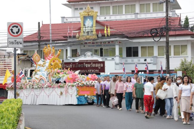 วันนี้ 8 ต.ค. 68 เวลา ที่วัดชนาธิปเฉลิม พระอารามหลวง อำเภอเมืองสตูล จังหวัดสตูล นายคณิต คงช่วย รองผู้ว่าราชการจังหวัดสตูล เป็นประธานฝ่ายฆราวาสในพิธีทำบุญตักบาตรเทโวโรหณะ (ประเพณีลากพระ) เนื่องในเทศกาลวันออกพรรษา ประจำปี 2568 โดยมีพระครูวิมลธรรมรส รองเจ้าคณะจังหวัดสตูล เป็นประธานฝ่ายสงฆ์ พร้อมด้วยหัวหน้าส่วนราชการ ข้าราชการ และพุทธศาสนิกชนชาวจังหวัดสตูล เข้าร่วมในพิธีด้วยความพร้อมเพรียงและศรัทธา