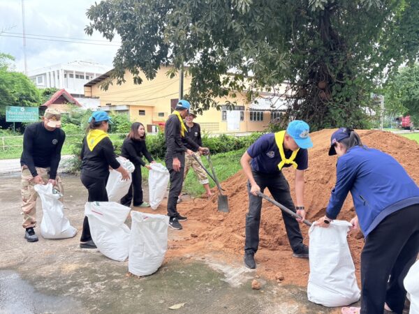 ศูนย์อำนวยการ จิตอาสาพระราชทานอำเภอทัพทัน จังหวัดอุทัยธานี สำรวจพื้นที่ได้รับผลกระทบจากอุทกภัย ขณะที่ ศูนย์อำนวยการจิตอาสาพระราชทาน อำเภอสว่างอารมณ์ จังหวัดอุทัยธานี กับประชาชนจิตอาสา บรรจุกระสอบทรายแจกจ่ายพื้นที่ประสบอุทกภัยและวางแนวกั้นน้ำในเขตพื้นที่ตำบลสว่างอารมณ์