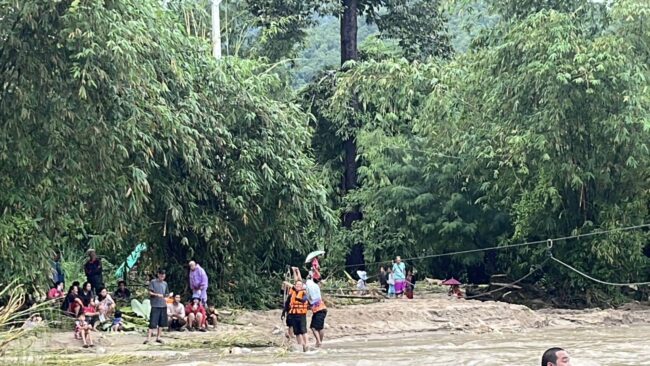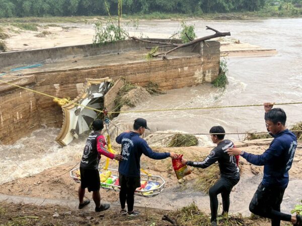 น้ำป่าทะลัก! ตัดถนนขาด 2 หมู่บ้านกระเหรี่ยง เจ้าหน้าที่หลายภาคส่วน จิตอาสาภัยพิบัติจังหวัดอุทัยธานี ตำรวจจิตอาสา โหนเชือกฝ่ากระแสน้ำ ส่งน้ำดื่ม อาหาร ให้ประชาชนประสบภัยที่ อำเภอลานสัก และ อำเภอห้วยคต จังหวัดอุทัยธานี