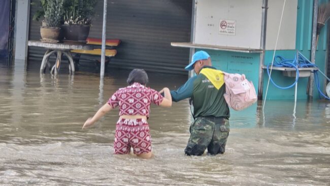 กองพันทหารเสนารักษ์ที่ 23 นำชุดบรรเทาสาธารณภัยและจิตอาสาภัยพิบัติ ช่วยเหลือบุคลากรทางการแพทย์ ผู้ป่วย ที่ประสบอุทกภัยในพื้นที่โรงพยาบาลสุโขทัย พร้อมอำนวยความสะดวกรับ – ส่ง ประชาชนที่ได้รับผลกระทบจากน้ำท่วมในเมืองสุโขทัย