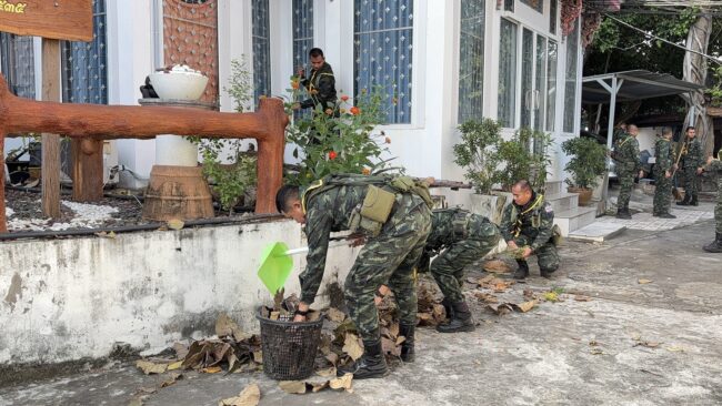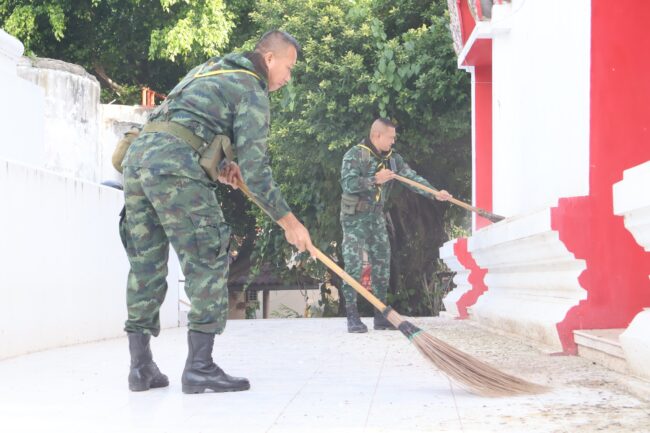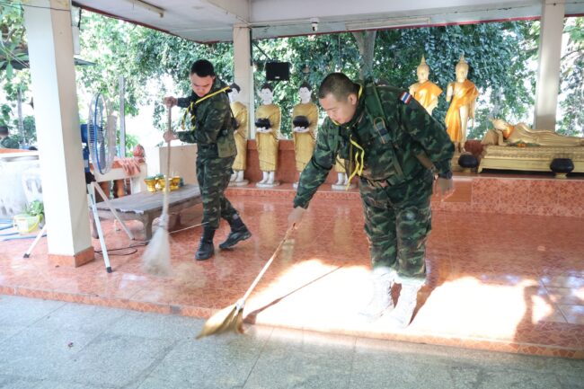 จิตอาสากองพันทหารปืนใหญ่ที่ 4 จัดกิจกรรมจิตอาสาพัฒนา วัดจอมคีรีนาคพรต ถวายเป็นพระราชกุศล