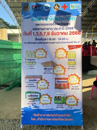 ส่วนที่ 2 เปิดจุดจำหน่ายสินค้าธงฟ้าราคาประหยัด ลดค่าครองชีพประชาชน โดยมีสินค้าที่จำเป็นต่อการบริโภคจำนวน 8 ชนิด มาจำหน่ายในราคาต่ำกว่าท้องตลาด 20 – 40 % ให้กับประชาชนและนักท่องเที่ยว โดยจำหน่ายในช่วงเวลา 16.00 – 19.00 น. ของวันที่ 1, 3, 5, 7 และ 9 ธันวาคม 2568