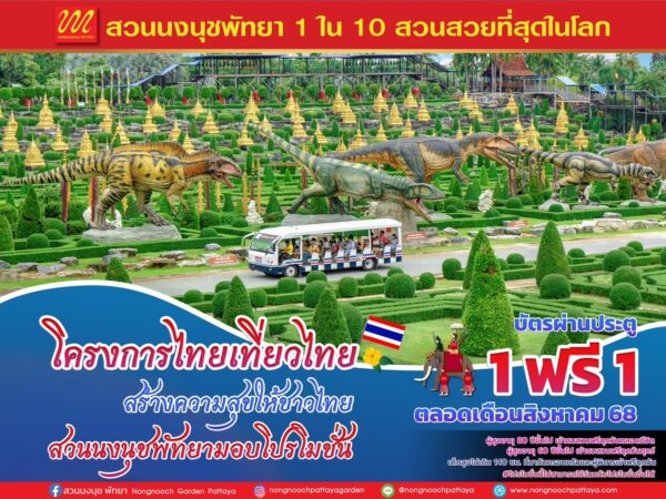 “ไทยเที่ยวไทย เที่ยวอย่างภาคภูมิใจที่สวนนงนุชพัทยา” สุดคุ้ม! ซื้อ 1 แถมฟรีอีก 1 ตลอดเดือนสิงหาคม 2568