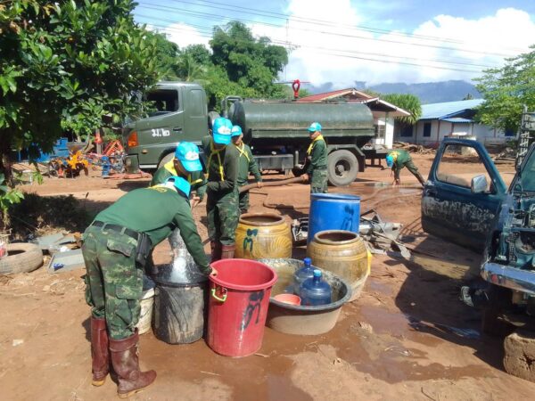 ศูนย์อำนวยการจิตอาสาพระราชทานมณฑลทหารบกที่ 35 สนับสนุนจัดตั้งโรงครัวพระราชทานประกอบอาหารแจกจ่ายผู้ประสบอุทกภัยจังหวัดอุตรดิตถ์ พร้อมกำลังพลจิตอาสาภัยพิบัติกองพันทหารม้าที่ 7 บรรจุถุงบิ๊กแบ็คปิดกั้นทางน้ำ ช่วยเหลือประชาชนฟื้นฟูบ้านเรือนพื้นที่อำเภอน้ำปาด จังหวัดอุตรดิตถ์