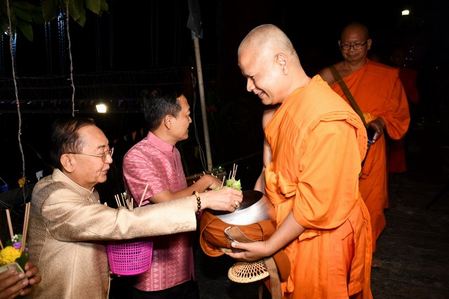 ศรีสะเกษ ประธานสภาวัฒนธรรมนำชาวพุทธตักบาตรดอกไม้ใต้แสงจันทร์แห่งแรกของโลก เพื่อสร้างความสมัครสมานสามัคคีของชุมชนเพื่อส่งเสริมการท่องเที่ยว สร้างมูลค่าทางเศรษฐกิจ และสังคม