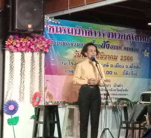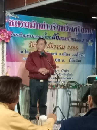 เมื่อวันที่ 9 ธันวาคม 2566 เวลา 19.00 น นายณัฏฐพงศ์ สุขวิสิฏฐ รองผู้ว่าราชการจังหวัดสุโขทัย เป็นประธานพิธีเปิดงานเลี้ยงสังสรรค์ครบรอบ 10 ปี ของชมรมนักข่าวจังหวัดสุโขทัย โดยมี ดร.พรรณสิริ กุลนาถศิริ สมาชิกสภาผู้แทนราษฏรจังหวัดสุโขทัย เขต 1 ได้ให้เกียรติ ร่วมงานเลี้ยง และกล่าวแสดงความชื่นชมกับชมรมนักข่าวจังหวัดสุโขทัย ซึ่งมีนางสาวทัศนา บัวคำ เจ้าของและบรรณาธิการข่าว ภูไทสุโขทัยออนไลน์ / ประธานชมรมนักข่าวจังหวัดสุโขทัย