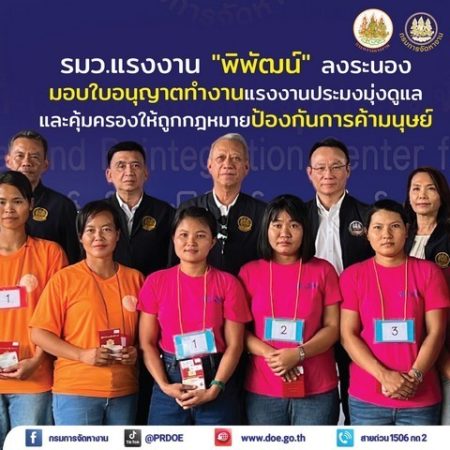 รมว.แรงงาน “พิพัฒน์” ลงระนอง มอบใบอนุญาตทำงานแรงงานประมง มุ่งดูแลและคุ้มครองให้ถูกกฎหมายป้องกันการค้ามนุษย์