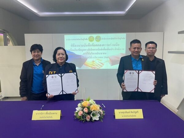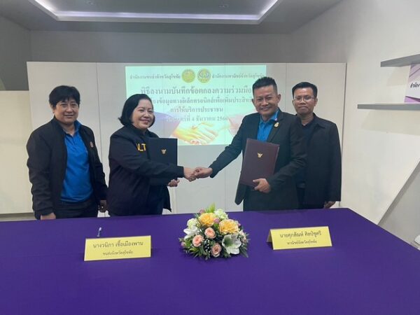 พาณิชย์จังหวัดสุโขทัย ร่วม บันทึกข้อตกลงความร่วมมือ (MOU) การเชื่อมโยงข้อมูลทางอิเล็กทรอนิกส์เพื่อเพิ่มประสิทธิภาพในการให้บริการประชาชนระหว่างสำนักงานขนส่งจังหวัดสุโขทัย กับ สำนักงานพาณิชย์จังหวัดสุโขทัย