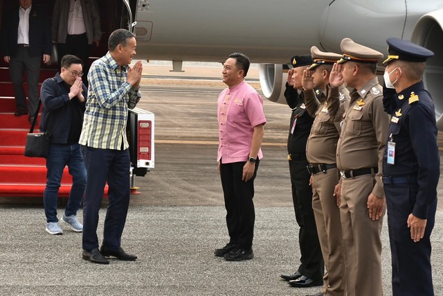 นายเศรษฐา ทวีสิน นายกรัฐมนตรี ถึงท่าอากาศยานเชียงใหม่แล้ว