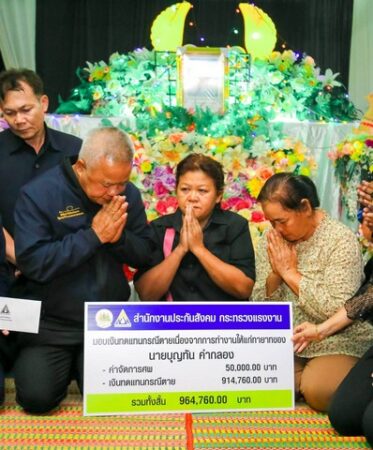 รายที่ 1 นายบุญทัน คำกลอง อายุ 61 ปี ทายาทของผู้เสียชีวิตจะได้รับเงินค่าทำศพ 50,000 บาท เงินทดแทนกรณีเสียชีวิต ร้อยละ 70 ของค่าจ้าง เป็นเงิน 914,760 บาท รวมเป็นเงินทั้งสิ้น 964,760 บาท