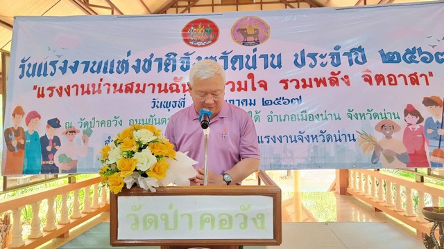 ที่วัดป่าคอวัง ตำบลดู่ใต้ อำเภอเมืองน่าน จังหวัดน่าน นายกฤชเพชร เพชระบูรณิน รองผู้ว่าราชการจังหวัดน่าน เป็นประธานพิธี เปิดกิจกรรมวันงานวันแรงงานแห่งชาติจังหวัดน่าน ปี 2567 โดยวันที่ 1 พฤษภาคมของทุกปี เป็นวันแรงงานแห่งชาติ เพื่อให้นายจ้างและลูกจ้าง ตามสถานประกอบการต่างๆ ความสำคัญของลูกจ้าง ผู้ใช้แรงงาน สำหรับลูกจ้าง ผู้ใช้แรงงาน ได้ถือโอกาสนี้เฉลิมฉลองในวันสำคัญของตน คือ วันแรงงานแห่งชาติ วันแรงงานแห่งชาติ วันที่ 1 พฤษภาคม เป็นวันที่กฎหมายคุ้มครองแรงงานบัญญัติให้นายจ้างจัดให้เป็นวันหยุดของลูกจ้าง