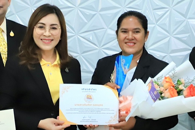 สาวไทยศิษย์กรมพัฒน์ สุดเจ๋ง คว้ารางวัลชนะเลิศ สาขา Beauty Facial Massage ในรายการแข่งขัน The 7 Thailand Championship BEAUTY CONTEST 2024 เวทีแข่งขันระดับนานาชาติจาก 16 ประเทศ มีผู้เข้าแข่งขันกว่า 100 คน อธิบดี “บุปผา” ร่วมแสดงความยินดีกับนางสาวกันติชา รอดบุตร ผู้ผ่านการฝึกอบรมหลักสูตรนวดหน้าเพื่อความงาม จากสถาบันพัฒนาฝีมือแรงงาน 21 ภูเก็ต