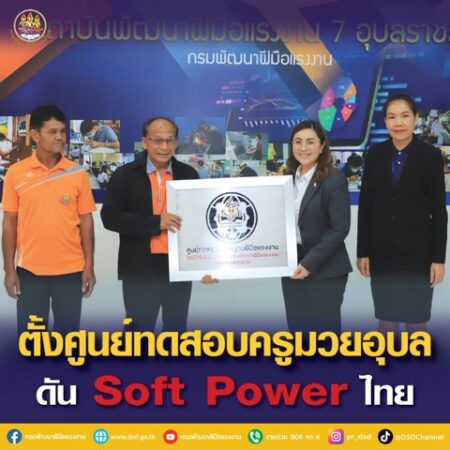 16 พ.ค. 67 นางสาวบุปผา เรืองสุด อธิบดีกรมพัฒนาฝีมือแรงงาน เป็นประธานมอบป้ายศูนย์ทดสอบมาตรฐานฝีมือแรงงานแห่งชาติ และใบอนุญาตเป็นผู้ดำเนินการทดสอบมาตรฐานฝีมือแรงงาน สาขา ผู้ฝึกสอนมวยไทย ระดับ 1 ให้แก่โรงเรียนกีฬาจังหวัดอุบลราชธานีและค่ายมวยไทย ส.สุดใจ ตาลสุมยิม ณ ห้องประชุมประทุมทิพย์ สถาบันพัฒนาฝีมือแรงงาน 7 อุบลราชธานี พร้อมเปิดเผยหลังเป็นประธานในงานดังกล่าวว่า กีฬามวยไทยเป็นหนึ่งใน Soft Power ที่รัฐบาลต้องการส่งเสริมและประชาสัมพันธ์ให้ประชาคมโลกได้รับรู้ เพื่อดึงดูดนักท่องเที่ยวเดินทางเข้าประเทศในลักษณะ Sport Tourism