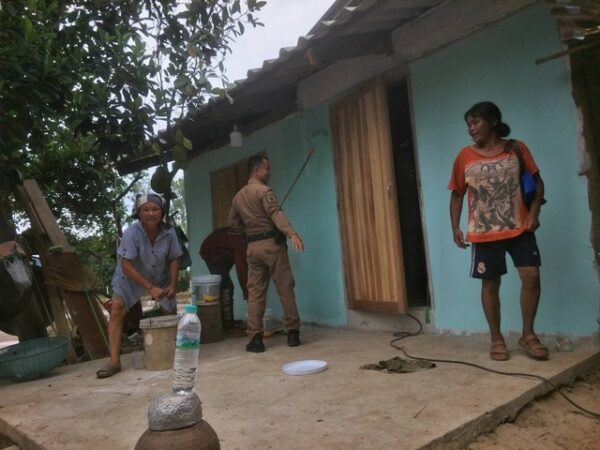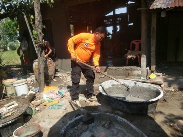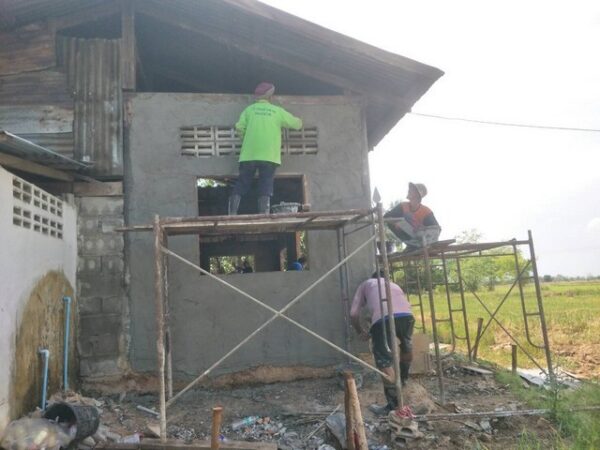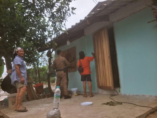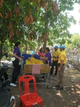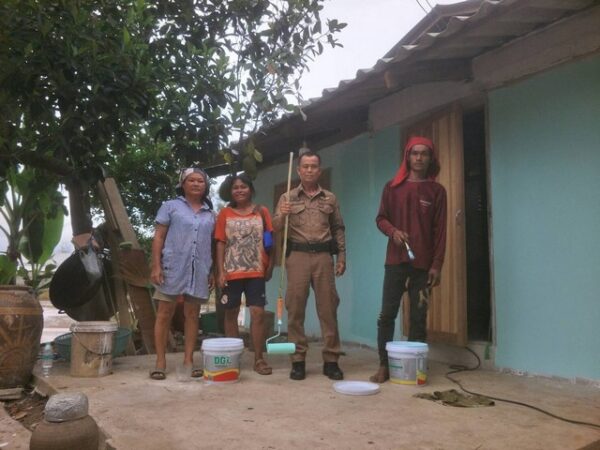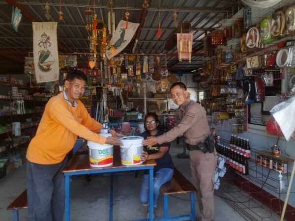 ร.ต.อ.ทอง พัวศรี รอง สว.(ป.)สภ.บางกระทุ่ม ทำหน้าที่หัวหน้าสายตรวจท่าตาล เป็นตัวแทนรับมอบสีทาบ้านจำนวน 2 ถัง สีผสม 1 ถัง พร้อมอุปกรณ์ทาสี จากร้านทองประเสริฐวัสดุก่อสร้าง เลขที่ 79/4 ม.6 ต.ท่าตาล อ.บางกระทุ่ม จ.พิษณุโลก มอบโดย นายมนตรี พลอยนิล และ นางจรรยา พลอยนิล เพื่อนำไปให้กับ นายบุญส่ง โพธิ์ทอง อายุ 74 ปี อยู่บ้านเลขที่ 151/1 ม.5 ต.ท่าตาล อ.บางกระทุ่ม จ.พิษณุโลก เป็นผู้ป่วยติดเตียง