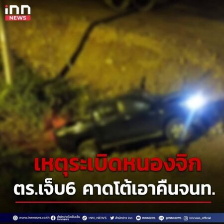 📅 āđ€āļĄāļ·āđˆāļ­āļ§āļąāļ™āļ—āļĩāđˆ 22 āļāļĢāļāļŽāļēāļ„āļĄ 2567 āđ€āļ§āļĨāļē 22.00 āļ™. āđ„āļ”āđ‰āđ€āļāļīāļ”āđ€āļŦāļ•āļļāļ„āļ™āļĢāđ‰āļēāļĒāļĨāļ­āļšāļ§āļēāļ‡āļĢāļ°āđ€āļšāļīāļ”āđ€āļˆāđ‰āļēāļŦāļ™āđ‰āļēāļ—āļĩāđˆāļ•āļģāļĢāļ§āļˆ āļŠāļ–āļēāļ™āļĩāļ•āļģāļĢāļ§āļˆāļ āļđāļ˜āļĢāļŦāļ™āļ­āļ‡āļˆāļīāļ āđ€āļŦāļ•āļļāđ€āļāļīāļ”āļ‚āļ“āļ°āļ—āļĩāđˆ āđ€āļˆāđ‰āļēāļŦāļ™āđ‰āļēāļ—āļĩāđˆāļ•āļģāļĢāļ§āļˆāļˆāļąāļ”āļāļģāļĨāļąāļ‡āļžāļĨ 1 āļŠāļļāļ”āļ›āļāļīāļšāļąāļ•āļīāļāļēāļĢ āđ€āļ”āļīāļ™āļ—āļēāļ‡āļ”āđ‰āļ§āļĒāļĢāļ–āļĒāļ™āļ•āđŒāļŦāļļāđ‰āļĄāđ€āļāļĢāļēāļ° āļˆāļģāļ™āļ§āļ™ 1 āļ„āļąāļ™ āđ€āļžāļ·āđˆāļ­āđ€āļ”āļīāļ™āļ—āļēāļ‡āđ„āļ›āļ›āļāļīāļšāļąāļ•āļīāļ āļēāļĢāļāļīāļˆāļāļēāļĢāļ•āļąāđ‰āļ‡āļ”āđˆāļēāļ™āļ•āļĢāļ§āļˆ / āļˆāļļāļ”āļ•āļĢāļ§āļˆ āļ”āļđāđāļĨāļ„āļ§āļēāļĄāļ›āļĨāļ­āļ”āļ āļąāļĒāđƒāļ™āļŠāļĩāļ§āļīāļ•āđāļĨāļ°āļ—āļĢāļąāļžāļĒāđŒāļ‚āļ­āļ‡āļžāļĩāđˆāļ™āđ‰āļ­āļ‡āļ›āļĢāļ°āļŠāļēāļŠāļ™āđƒāļ™āļžāļ·āđ‰āļ™āļ—āļĩāđˆ āļŦāļĨāļąāļ‡āļˆāļēāļāđ€āļŠāļĢāđ‡āļˆāļŠāļīāđ‰āļ™āļ āļēāļĢāļāļīāļˆāđ„āļ”āđ‰āđ€āļ”āļīāļ™āļ—āļēāļ‡āļāļĨāļąāļš āļāļĢāļ°āļ—āļąāđˆāļ‡āļĄāļēāļ–āļķāļ‡āļšāļĢāļīāđ€āļ§āļ“āļ–āļ™āļ™āļ—āļēāļ‡āļŦāļĨāļ§āļ‡āļŦāļĄāļēāļĒāđ€āļĨāļ‚ 43 āļšāđ‰āļēāļ™āđƒāļŦāļĄāđˆāļ—āļļāđˆāļ‡āļ™āđ€āļĢāļ™āļ—āđŒ āļŦāļĄāļđāđˆāļ—āļĩāđˆ 9 āļ•āļģāļšāļĨāļšāđˆāļ­āļ—āļ­āļ‡ āļ­āļģāđ€āļ āļ­āļŦāļ™āļ­āļ‡āļˆāļīāļ āļˆāļąāļ‡āļŦāļ§āļąāļ”āļ›āļąāļ•āļ•āļēāļ™āļĩ āđ„āļ”āđ‰āđ€āļāļīāļ”āđ€āļŦāļ•āļļāļĢāļ°āđ€āļšāļīāļ”āļ‚āļķāđ‰āļ™ āđāļĢāļ‡āļĢāļ°āđ€āļšāļīāļ”āļ—āļģāđƒāļŦāđ‰ āđ€āļˆāđ‰āļēāļŦāļ™āđ‰āļēāļ—āļĩāđˆāđ„āļ”āđ‰āļĢāļąāļšāļšāļēāļ”āđ€āļˆāđ‡āļšāđ€āļĨāđ‡āļāļ™āđ‰āļ­āļĒ āļˆāļģāļ™āļ§āļ™ 6 āļ™āļēāļĒ āļ™āļģāļŠāđˆāļ‡āđ‚āļĢāļ‡āļžāļĒāļēāļšāļēāļĨāļŦāļ™āļ­āļ‡āļˆāļīāļ āđāļĨāļ°āļŠāđˆāļ‡āļ•āđˆāļ­āđ‚āļĢāļ‡āļžāļĒāļēāļšāļēāļĨāļ›āļąāļ•āļ•āļēāļ™āļĩ āļ—āļĢāļēāļšāļŠāļ·āđˆāļ­ āļ”āļąāļ‡āļ™āļĩāđ‰ 👇👇