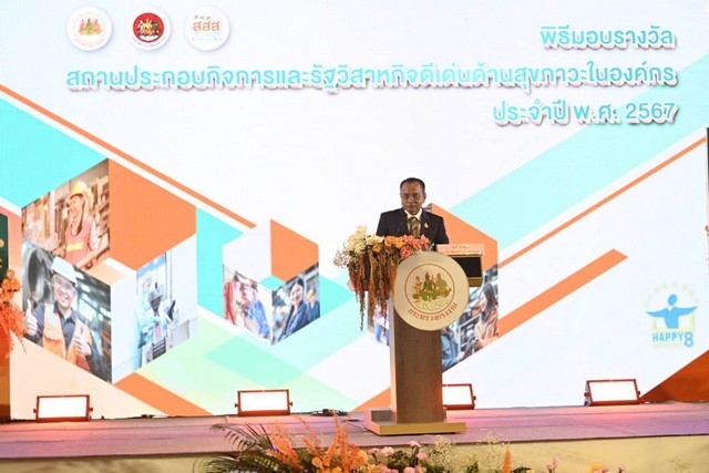 8 สิงหาคม 2567 “พิพัฒน์ รัชกิจประการ” รัฐมนตรีว่าการกระทรวงแรงงาน มอบหมาย นายอารี ไกรนรา เลขานุการรัฐมนตรีว่าการกระทรวงแรงงาน มอบรางวัลสถานประกอบกิจการและรัฐวิสาหกิจดีเด่นด้านสุขภาวะในองค์กร จำนวน 29 แห่ง ภายใต้โครงการความร่วมมือกับ สสส. มุ่งผลักดันให้เป็นกลไกต้นแบบสร้างสันติสุขในสังคมแรงงาน ณ โรงแรมอัศวิน แกรนด์ คอนเวนชั่น เขตหลักสี่ กรุงเทพมหานคร