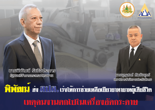 “พิพัฒน์” ห่วงใยเหตุเครื่องปั๊มกระดาษหนีบคนงานดับ มอบ ประกันสังคม เร่งให้การช่วยเหลือเยียวยาทายาทโดยทันที