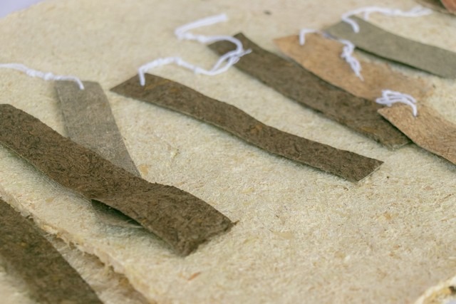 นายบุคคอรี อาริหมาน นิสิตชั้นปีที่ 4 หนึ่งในสมาชิกกลุ่ม อธิบายกระบวนการผลิตโดยเริ่มจากตั้งแต่การเตรียมใบสับปะรดซึ่งมาช่วยยึดเส้นใย และเส้นใยตาลโตนด ตัวใบสับปะรดเองต้องผ่านการฝอกด้วยสารโซเดียมไฮดรอกไซด์ ประมาณ 24 ชม. ก่อนนำมาต้ม 4 ชม. และปั่นจึงจะได้เส้นใยออกมา จากนั้นนำเส้นใยของทั้งสองมาผสมกันในอัตราส่วน 80:20 ก่อนจะไปขึ้นรูปและตากให้แห้งจนกลายเป็นตัวกระดาษที่สามารถต่อยอดนำไปพัฒนาเป็นตัวปกหนังสือ และผลิตภัณฑ์อื่นๆ อีกมากมายเพื่อสร้างรายได้ให้กับชุมชนและส่งเสริมการเป็นผู้ประกอบการของนิสิต