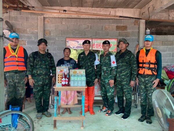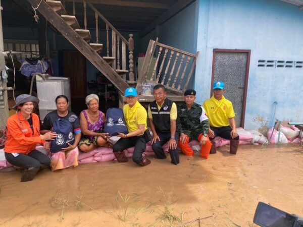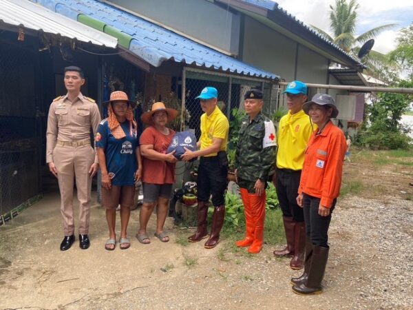 2.มอบถุงยังชีพสำหรับ บ้านเรือนที่มีผลกระทบจากน้ำท่วม จำนวน 5 หลังคาเรือน