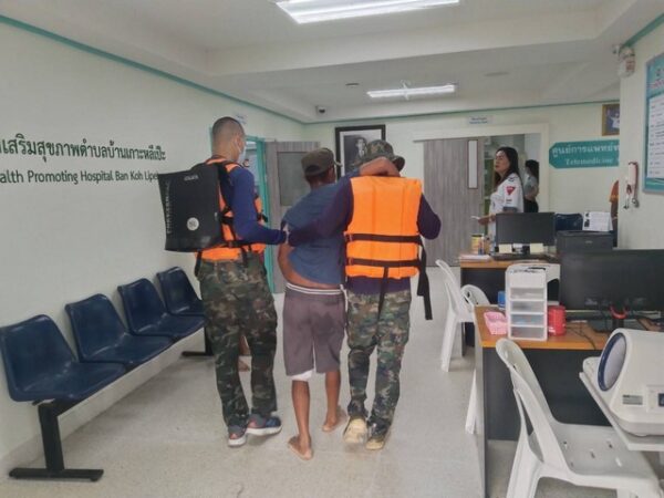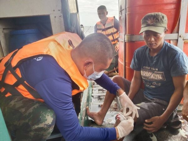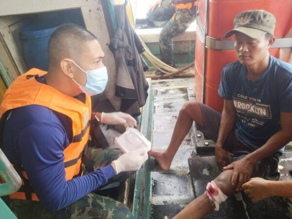 พร้อมเจ้าหน้าที่ชุดบรรเทาสาธารณะภัยทางทะเล และเจ้าหน้าที่พยาบาลประจำหน่วย เดินทางไปยังจุดเกิดเหตุ พบเรือประมงสิงห์เดโช 2 และสิงห์เดโช 4จอดทอดสมอเทียบกันอยู่ และพบผู้ประสบเหตุ ชื่อ Mr.Maung Sa Win อายุ 35 ปี เพศชาย สัญชาติเมียนมา คนประจำเรือประมงสิงห์เดโช 2 ประสบเหตุ ลื่นล้มบนเรือ มีบาดแผลฉีกขาดใต้เข่า ซ้ายยาว 10 ซม. ลึก 12 ซม. รู้สึกตัวดี เจ้าหน้าที่พยาบาลประจำหน่วย ทำการปฐมพยาบาลปิดบาดแผล ห้ามเลือด แล้วนำส่งที่ โรงพยาบาลสตูลเกาะหลีเป๊ะ โดยแพทย์ทำการเย็บบาดแผล จำนวน 11 เข็ม พร้อมให้ยาฆ่าเชื้อทางหลอดเลือด ผู้ป่วยได้รับการรักษาอยู่ในขั้นปลอดภัย แพทย์อนุญาตให้ออกจากโรงพยาบาลได้ ทั้งนี้หน่วยปฏิบัติการต่อสู้อากาศยานและรักษาฝั่งที่491 (เกาะหลีเป๊ะ)ได้นำตัวผู้ประสบเหตุรายดังกล่าวส่งกลับที่เรือประมงสิงห์เดโช 2