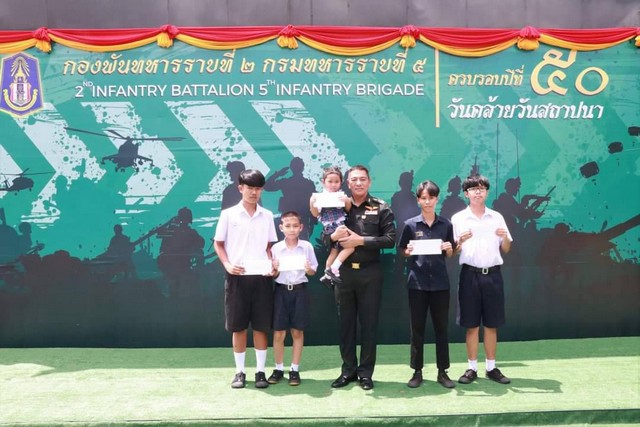 ตลอดจนเพื่อความเป็นสิริมงคลแก่หน่วย เป็นขวัญกำลังใจแก่กำลังพลและครอบครัว โดยมีนายศักระ กปิลกาญจน์ ผู้ว่าราชการจังหวัดสตูล พันเอกทวีพร คณะทอง เป็นผู้บังคับการกรมทหารราบที่ 5 พ.อ.ชัยวุฒิ พรมทอง ผบ.ร.5 พัน.2 พร้อมด้วยอดีตผู้บังคับบัญชา ข้าราชการทหาร ตำรวจ หัวหน้าส่วนราชการ และสมาชิกสมาคมแม่บ้านทหารบก สาขากองพันทหารราบที่ 2 กรมทหารราบที่ 5 กำลังพล และครอบครัวของกำลังพลเข้าร่วมพิธี ในโอกาสนี้แม่ทัพภาคที่ 4 ได้มอบทุนการศึกษาให้กับบุตรกำลังพล จำนวน 257 ทุนด้วย