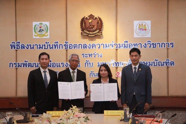 เมื่อวันที่ 25 กันยายน 2567 ที่ผ่านมา นางสาวบุปผา เรืองสุด อธิบดีกรมพัฒนาฝีมือแรงงาน มอบหมายให้นางจิรวรรณ สุตสุนทร รองอธิบดี ลงนามบันทึกข้อตกลงความร่วมมือทางวิชาการด้านการพัฒนาฝีมือแรงงานกับมหาวิทยาลัยเกษมบัณฑิต โดยมีนายวัลลภ สุวรรณดี อธิการบดี เป็นผู้ลงนาม ณ ห้องประชุมผู้บริหารระดับสูง ชั้น 3 อาคารเฉลิมพระเกียรติ มหาวิทยาลัยเกษมบัณฑิต วิทยาเขตพัฒนาการ เขตสวนหลวง กรุงเทพมหานคร ประเดิมต้นปีงบประมาณ 68 ตั้งศูนย์ทดสอบมาตรฐานฝีมือแรงงานแห่งชาติ เพิ่ม 2 สาขารองรับอัตราค่าจ้างตามฝีมือ