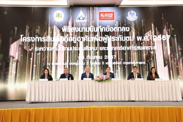 วันที่ 26 กันยายน 2567 เวลา 13.30 น. นายพิชัย ชุณหวชิร รองนายกรัฐมนตรีและรัฐมนตรีว่าการกระทรวงการคลัง และ นายพิพัฒน์ รัชกิจประการ รัฐมนตรีว่าการกระทรวงแรงงาน ร่วมเป็นประธานและสักขีพยานในพิธีลงนามบันทึกข้อตกลงความร่วมมือในโครงการสินเชื่อที่อยู่อาศัยเพื่อผู้ประกันตน ระหว่างสำนักงานประกันสังคมกับธนาคารอาคารสงเคราะห์ โดยมี นายบุญสงค์ ทัพชัยยุทธ์ เลขาธิการสำนักงานประกันสังคม ลงนามบันทึกข้อตกลงร่วมกับนายกมลภพ วีระพละ กรรมการผู้จัดการธนาคารอาคารสงเคราะห์ พร้อมกันนี้ คณะกรรมการประกันสังคม คณะผู้บริหารกระทรวงแรงงาน คณะผู้บริหารสำนักงานประกันสังคม คณะผู้บริหารธนาคารอาคารสงเคราะห์ คณะผู้บริหารกระทรวงการคลัง แขกผู้มีเกียรติ สื่อมวลชนและเจ้าหน้าที่สำนักงานประกันสังคมให้การต้อนรับ ณ ห้องแกรนด์ บอลรูม ชั้น 3 โรงแรม ดิ เอมเมอรัลด์ กรุงเทพมหานคร