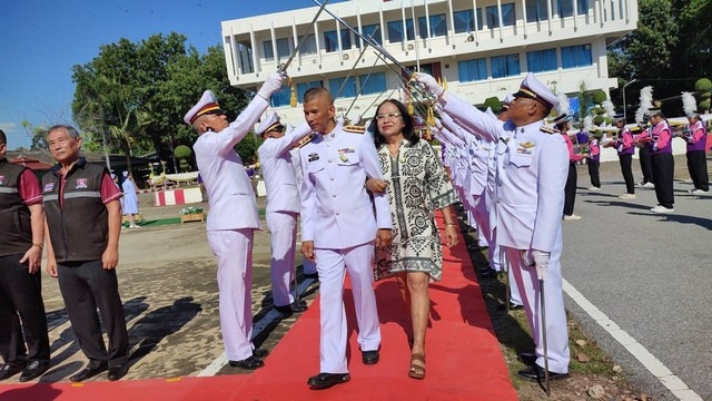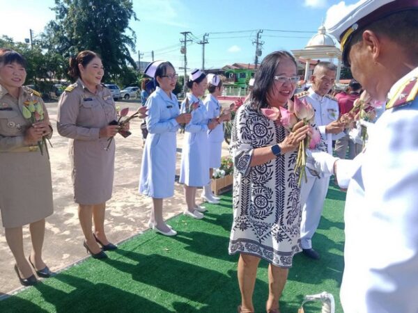 โดยพิธีเริ่ม เจ้าหน้าที่ตำรวจ และเจ้าหน้าที่จากงานต่างๆ ได้ยืนตรงเคารพธงชาติ และเพลงสรรเสริญพระบารมี แสดงความจงรักภักดีต่อชาติ ศาสนา และสถาบันพระมหากษัตริย์ จากนั้นนายตำรวจที่เกษียณอายุราชการทั้ง 2 นาย ได้จุดธูปเทียนสักการะพระพุทธรูปบริเวณด้านหน้าสถานีตำรวจ พร้อมได้เข้ากราบพระบรมรูป ที่อนุสรณ์สถานพระบาทสมเด็จพระบรมชนกาธิเบศร มหาภูมิพลอดุลยเดชมหาราช บรมนาถบพิตร หลังจากนั้นนายตำรวจทั้งสองนายที่เกษียณอายุราชการพร้อมภรรยา ได้เดินลอดซุ้มกระบี่ผ่าน