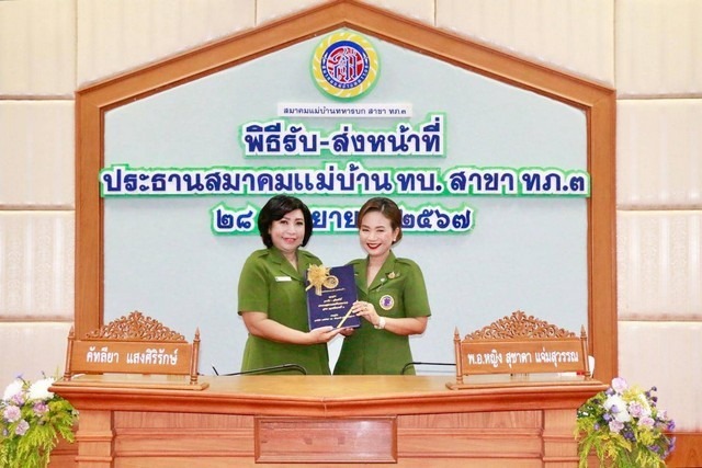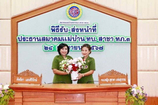 เมื่อวันเสาร์ที่ 28 กันยายน 2567 เวลา 10.30 น. สมาคมแม่บ้านทหารบก สาขา กองทัพภาคที่ 3 กระทำพิธี รับ – ส่งหน้าที่ ประธานสมาคมแม่บ้านทหารบก สาขา กองทัพภาคที่ 3 ระหว่าง คุณ คัทลียา แสงศิริรักษ์ และ พันเอกหญิง สุชาดา แจ่มสุวรรณ ณ ห้องคชรัตน์ 1 กองบัญชาการกองทัพภาคที่ 3 ค่ายสมเด็จพระนเรศวรมหาราช อำเภอเมือง จังหวัดพิษณุโลก