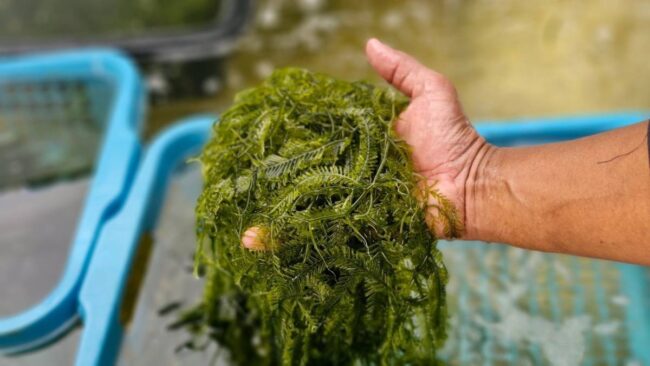 สตูล กลุ่มธนาคารปูม้าบ้านทุ่งริ้น อำเภอท่าแพ ต่อยอดสินค้าชุมชนสู่การเพาะเลี้ยงสาหร่ายขนนกอาหารท้องถิ่นสร้างรายได้เพิ่ม หลังพบปริมาณในธรรมชาติลดน้อยลง
