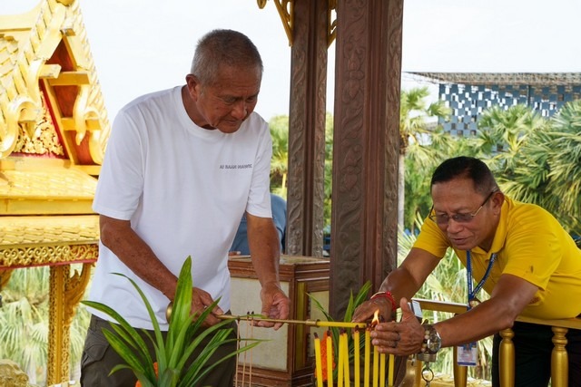 วันนี้ นายกัมพล ตันสัจจา ประธานสวนนงนุชพัทยา พร้อมคณะผู้บริหาร ร่วมประกอบพิธีเปลี่ยน “ธงมนตรา” จาก ประเทศภูฏาน จำนวน 9 ผืนในเวลา 9.09 น.ได้นิมนต์พระครูเกษมกิตติโสภณ เจ้าคณะตำบลพูลตาหลวง และพระสงฆ์รวมจำนวน 9 รูป มาประกอบพิธีปิดทองและเจิม ธงมนตรา พร้อมสวดชัยมงคลคาถาในพิธี