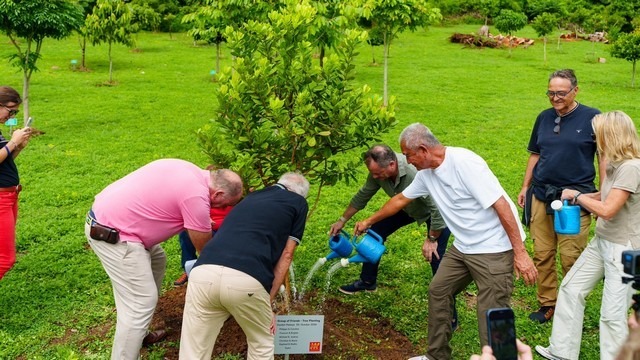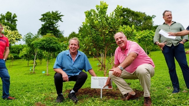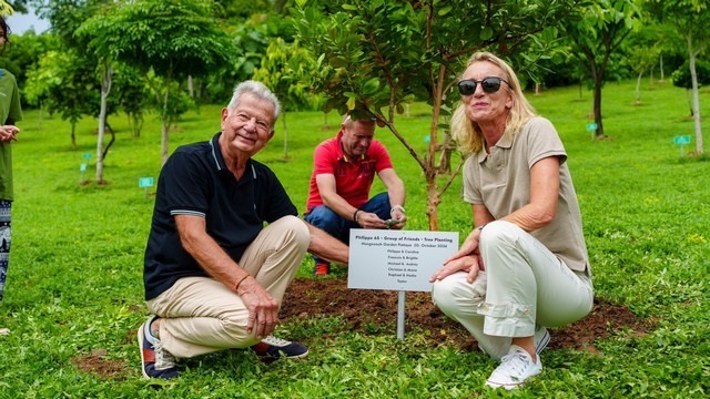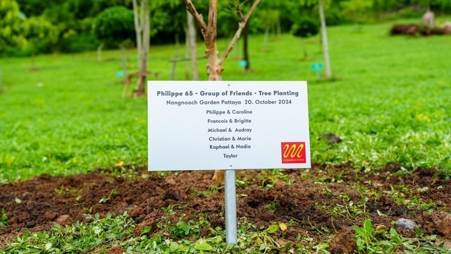 โอกาสนี้ ทางคณะได้ร่วมกันปลูกต้นพิเมนต้า ไดโอก้า(Pimenta dioica )มีถิ่นกำเนิดแถบแคริบเบียน เม็กซิโกตอนใต้ และอเมริกากลาง ใบมีลักษณะเป็นรูปวงรี ดอกมีกลิ่นหอม ผลมีเนื้อหวานและมักมีสองเมล็ดสามารถนำไปใช้ในการปรุงอาหารหรือเป็นยาสมุนไพรได้ สวนรุกขชาติแห่งนี้ทางสวนนงนุชพัทยาได้ขออนุญาติจากกรมป่าไม้จำนวน43 ไร่ เพื่อรวบรวมพันธุ์ไม้และปลูกไม้ยืนต้นที่มีมูลค่าและหายากจากทั่วทุกมุมโลกและมีบุคคลสำคัญต่างๆเดินทางมาปลูกต้นไม้กันอย่างต่อเนื่อง