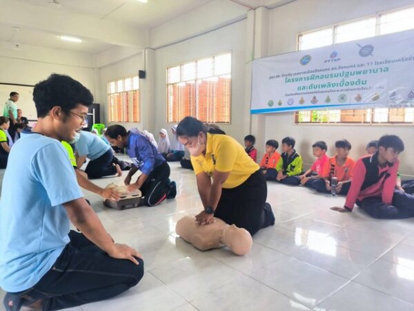 สงขลา บริษัท ปตท.สำรวจและผลิตปิโตรเลียม จำกัด (มหาชน) หรือ ปตท.สผ. จัดกิจกรรมฝึกอบรมเรื่องความปลอดภัยและการช่วยเหลือผู้ประสบเหตุเบื้องต้น