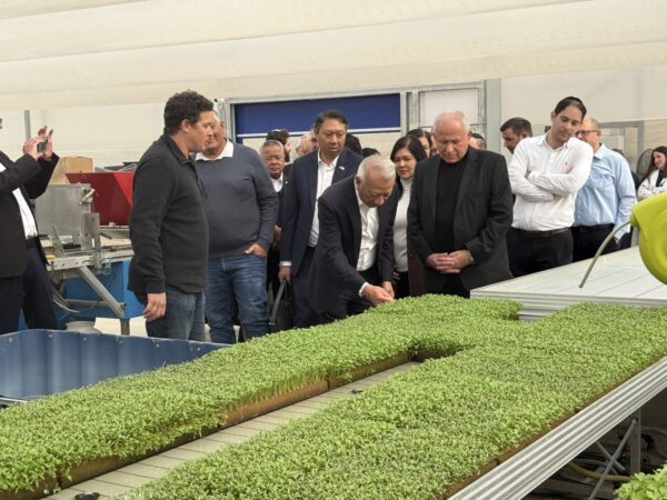 จากนั้น นายพิพัฒน์ และคณะ ได้เยี่ยมชมฟาร์ม Agrivoltaics โดยฟาร์มแห่งนี้ได้ก่อตั้งเมื่อปี พ.ศ. 2567 บนพื้นที่ประมาณ 94 ไร่ เป็นฟาร์มเกษตรพลังงานสีเขียวในทุ่งหญ้าโดรัล ได้นำวิสัยทัศน์ของการเกษตรพลังงานแสงอาทิตย์มาสู่ประเทศอิสราเอลผ่านการพัฒนานวัตกรรมการเกษตรขั้นสูง และพลังงานแสงอาทิตย์ ให้สามารถดำรงอยู่ร่วมกันได้ การรวมทั้งสองระบบนี้เข้าด้วยกัน ทำให้ช่วยเพิ่มผลผลิตพลังงานไฟฟ้า และเพิ่มผลผลิตทางการเกษตรอย่างมีนัยสำคัญ ในส่วนการจ้างงานนายจ้างจ้างแรงงานทำงานในฟาร์มเกษตร และฟาร์มวัว รวม 74 คน แรงงานไทยมีรายได้ประมาณเดือนละกว่า 60,000 บาท (ยังไม่รวมค่าล่วงเวลา) โดยสามารถส่งเงินกลับให้ครอบครัวที่เมืองไทยประมาณเดือนละ 30,000 – 40,000 บาท