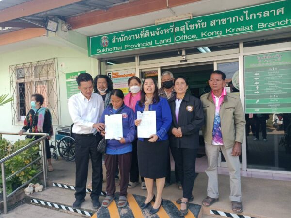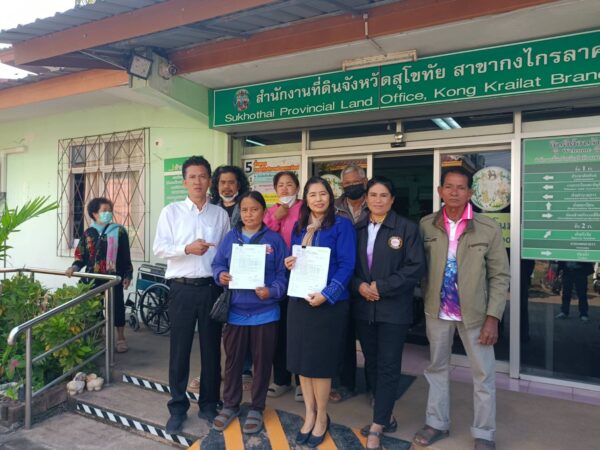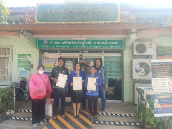 ได้ส่งมอบเช็คเงินสดและรับมอบโฉนดที่ดิน จำนวน 3 แปลง เพื่อไถ่ถอนจากจำนองและโอนตามกฏหมาย มาตรา 37/9 วรรคสอง แห่งพระราชบัญญัติกองทุนฟื้นฟูและพัฒนาเกษตรกร พ.ศ 2542 ณ.สำนักงานที่ดินจังหวัดสุโขทัย สาขากงไกรลาศอำเภอกงไกรลาศ จังหวัดสุโขทัย
