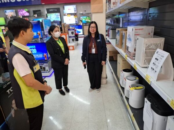 ผลการตรวจสอบ : สินค้ามีปริมาณเพียงพอต่อความต้องการของประชาชนในพื้นที่ มีการปิดป้ายแสดงราคาสินค้าชัดเจน โดยประชาชนให้ความสนใจเลือกซื้อเครื่องฟอกอากาศจำนวนมาก เนื่องจากสถานการณ์ค่าฝุ่นละอองที่สูงขึ้น ผู้ประกอบการมีการจัดโปรโมชั่นลดราคา โดยเครื่องฟอกอากาศราคายังทรงตัวไม่มีแนวโน้มปรับขึ้น พนักงานเจ้าหน้าที่ได้กวดขันผู้ประกอบการ มิให้ทำการกักตุนและฉวยโอกาสขึ้นราคาสินค้า พร้อมทั้งกำชับให้ปฏิบัติตามพระราชบัญญัติว่าด้วยราคาสินค้าและค่าบริการ พ.ศ. 2542 อย่างเคร่งครัด