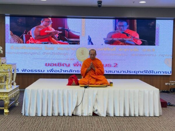 ในการนี้ พระอาจารย์มหาวงศ์ศักดิ์ อาภากโร ป.ธ.9 เจ้าคณะอำเภอเกษตรสมบูรณ์ จังหวัดชัยภูมิ และเจ้าคณะ 5 วัดทองนพคุณ เขตคลองสาน กรุงเทพมหานคร ได้แสดงธรรมหัวข้อ “การนำหลักธรรมทางพุทธศาสนามาประยุกต์ใช้ในการปฏิบัติงาน ครองตน ครองคน ครองงาน” ตามโครงการและกิจกรรมการขับเคลื่อนคุณธรรมและความโปร่งใสของสำนักกรรมาธิการ 2 ภายใต้แผนบูรณาการส่งเสริม สนับสนุนการดำเนินการด้านคุณธรรม จริยธรรม ความโปร่งใสและป้องกันการทุจริตของสำนักงานเลขาธิการวุฒิสภา ประจำปีงบประมาณ พ.ศ. 2568