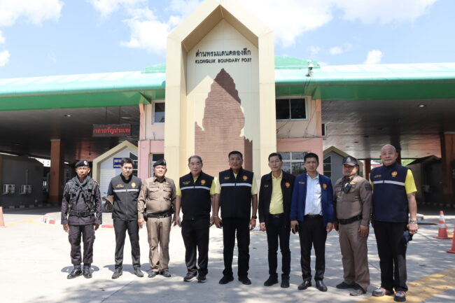 จากนั้น เวลา 13.30 นาฬิกา ณ ตลาดชายแดนบ้านคลองลึก อำเภออรัญประเทศ จังหวัดสระแก้ว คณะลงพื้นที่ติดตามสถานการณ์การค้าชายแดน ซึ่งมีร้านค้าเปิดขายกว่า 8,000 ร้าน ส่วนใหญ่ร้านค้ากว่า 90% จะมีชาวกัมพูชาเป็นผู้เช่า โดยจะเดินทางข้ามมาค้าขายแบบไปเช้าเย็นกลับ และมีร้านที่ชาวกัมพูชาเป็นเจ้าของและลงทุนซื้อของมาขายเอง