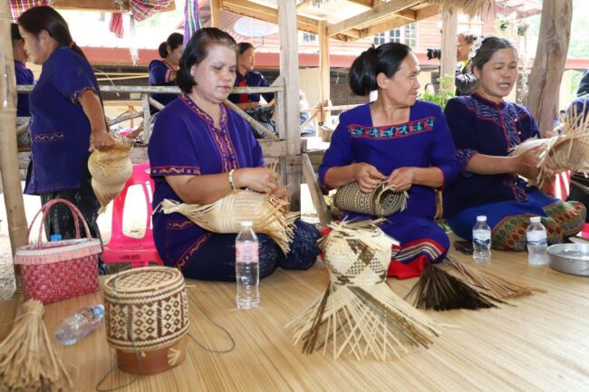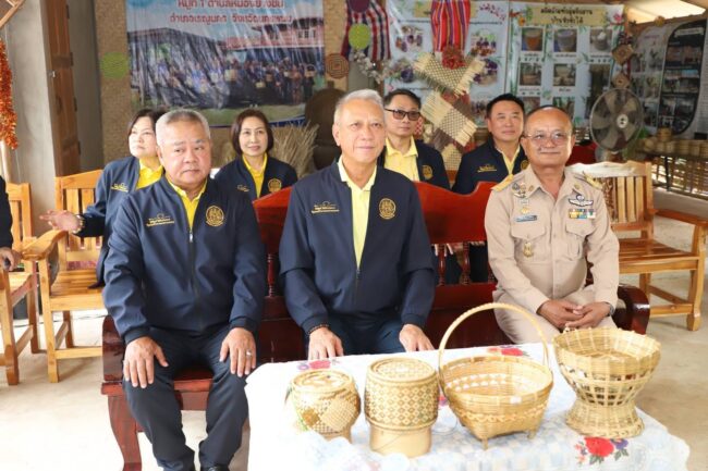 หนึ่งในไฮไลต์สำคัญของการลงพื้นที่ครั้งนี้ คือการเยี่ยมชม “กลุ่มจักสานบ้านนาหัวขัวใต้” ตำบลหนองย่างชิ้น อำเภอเรณูนคร ซึ่งเป็นกลุ่มอาชีพอิสระที่มีสมาชิกกว่า 40 ครัวเรือน ใช้แนวคิดการปลูกไผ่หมุนเวียนเพื่อลดต้นทุนวัตถุดิบ และสร้างผลิตภัณฑ์จักสานที่เป็นมิตรต่อสิ่งแวดล้อมตามแนวทาง BCG Model ผลจากการพัฒนานี้ ทำให้สมาชิกมีรายได้เสริมเฉลี่ย 7,000–8,000 บาทต่อเดือน นอกจากนี้สำนักงานจัดหางานจังหวัดนครพนมยัง ได้เข้ามาสนับสนุนการเข้าถึงกองทุนส่งเสริมอาชีพอิสระ วงเงินสูงสุด 300,000 บาท เพื่อขยายธุรกิจและสร้างโอกาสทางเศรษฐกิจในท้องถิ่น