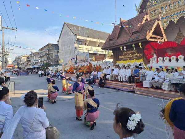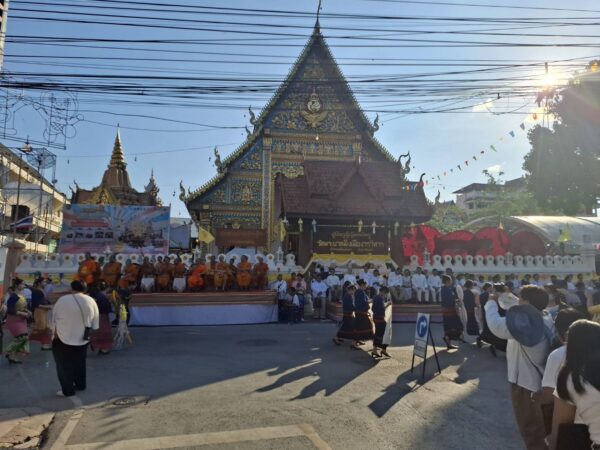 วัดพระบาทมิ่งเมืองวรวิหาร พร้อมกับต้อนรับขบวนแห่เครื่องสักการะฯ ณ บริเวณหน้าวัดพระบาทมิ่งเมืองวรวิหาร