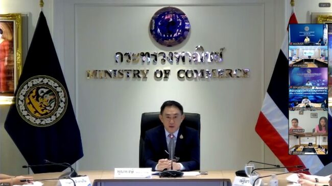 ในการนี้ นายศุภสัณห์ ศิลป์ชูศรี พาณิชย์จังหวัดแพร่ มอบหมายให้ นางสาวพิชญา จีปน นักวิชาการพาณิชย์ชำนาญการ เข้าร่วมฟังการแถลงดังกล่าวด้วยฯ ผ่านระบบ Zoom ณ ห้องปฏิบัติการ ชั้น 2 สำนักงานพาณิชย์จังหวัดแพร่