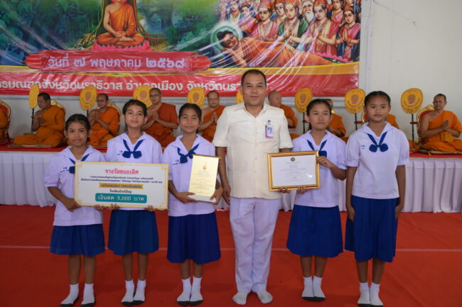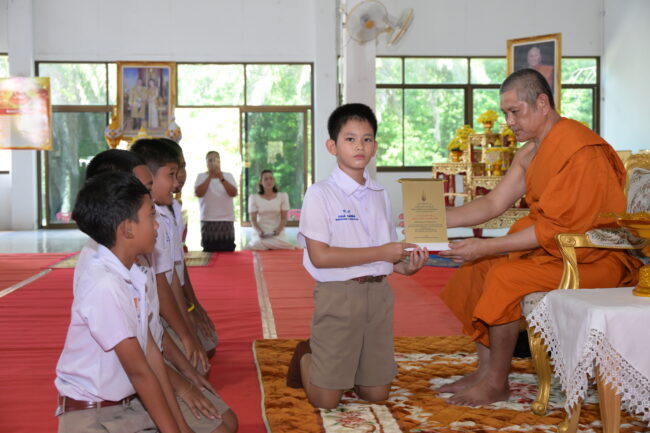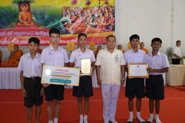 ภายในพิธีมีการจุดธูปเทียนบูชาพระรัตนตรัย ถวายจตุปัจจัยไทยธรรมแด่พระสงฆ์ เปิดกรวยถวายราชสักการะสมเด็จพระสังฆราช และพระบาทสมเด็จพระเจ้าอยู่หัว ตามลำดับ จากนั้น พระราชวัชรญาณโมลี ได้มอบโล่รางวัลพระราชทานจากสมเด็จพระสังฆราชฯ แก่นักเรียนผู้ชนะการประกวดในระดับประถมศึกษา มัธยมศึกษาตอนต้น และมัธยมศึกษาตอนปลาย ขณะที่ นายแพทย์สมหมาย ได้มอบเกียรติบัตรและเงินรางวัลให้กับนักเรียนในพื้นที่