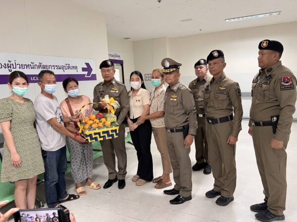 ถนนบรมไตรโลกนารถ2 ต.ในเมือง อ.เมือง จ.พิษณุโลก พร้อมมอบสิ่งของบำรุงขวัญ เพื่อเป็นขวัญและกำลังใจ ให้กับญาติข้าราชการตำรวจผู้รับบาดเจ็บพร้อมด้วยพล.ต.ต.นิคม เครือนพรัตน์ผบก.ภ.จว.พิษณุโลก,พ.ต.อ.สม